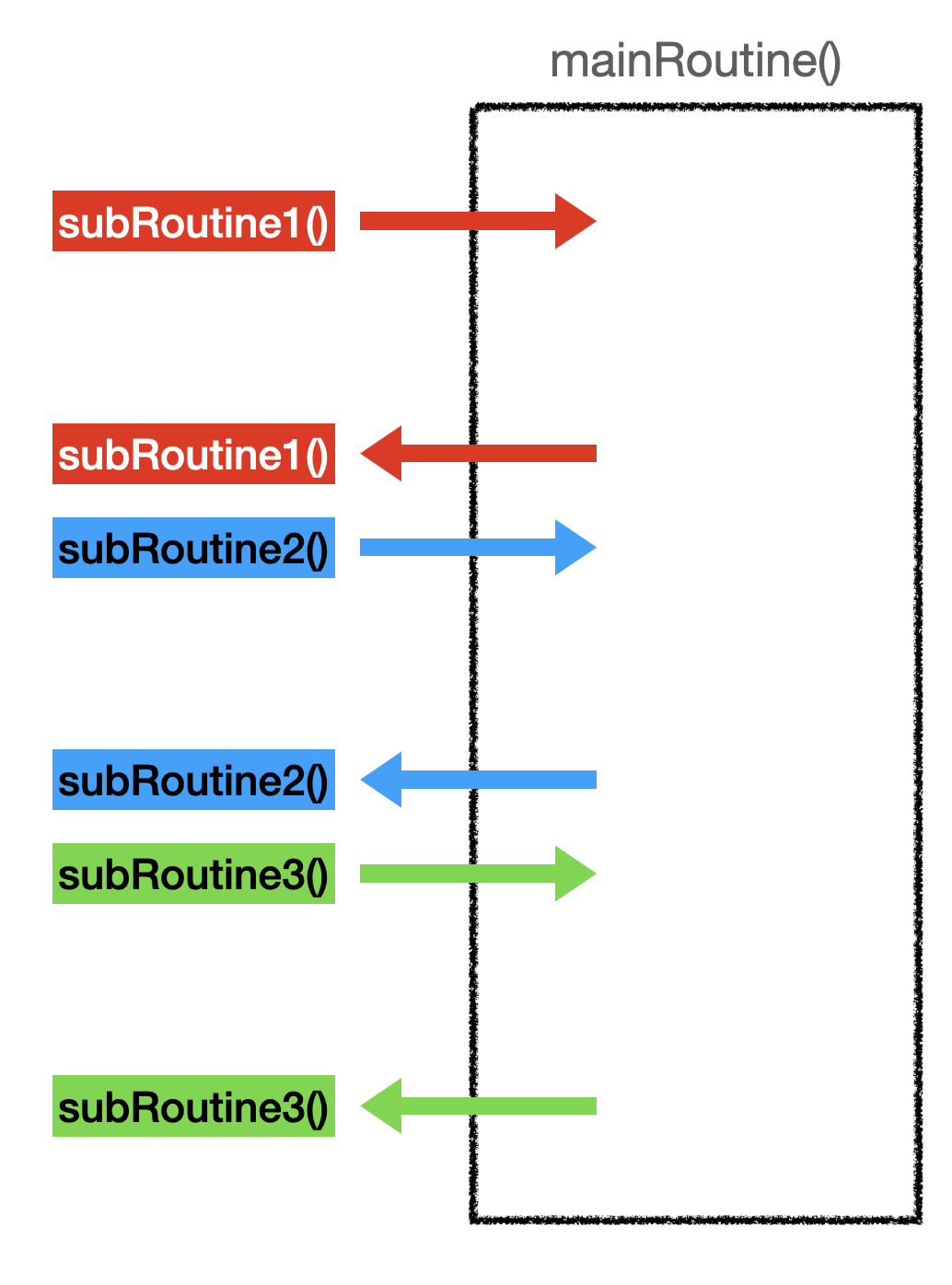 위 코드는 mainRoutine() 에서 순차적으로 subRoutine1() -> subRoutine2() -> subRoutine3()
