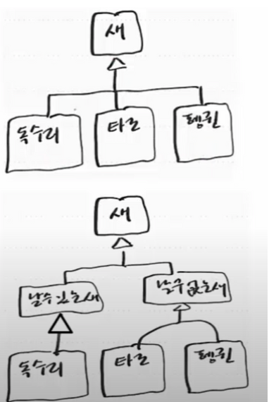 - 상속계층을 잡을 때 행위(Behavior) 를 기반으로 공통적인 것을 찾아야 함.