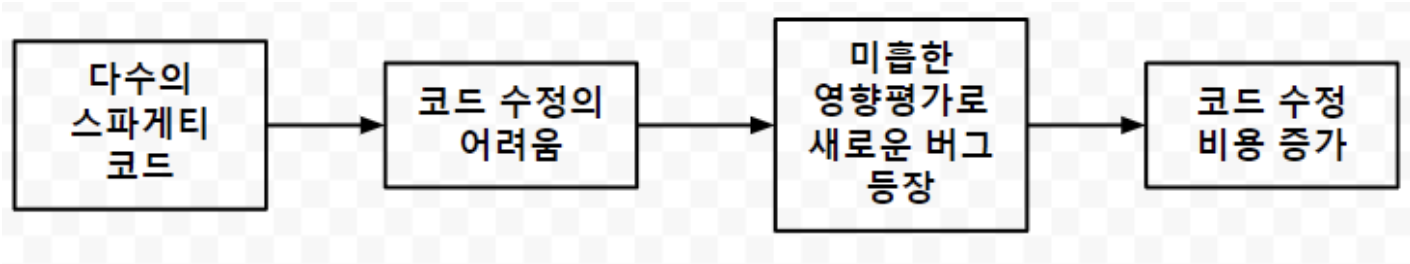 즉, 코드품질이 확보되지 않으면 나쁜코드 양산의 악순환이 발생하고, 나쁜코드는 다음과 같은 악순환을 야기한다.