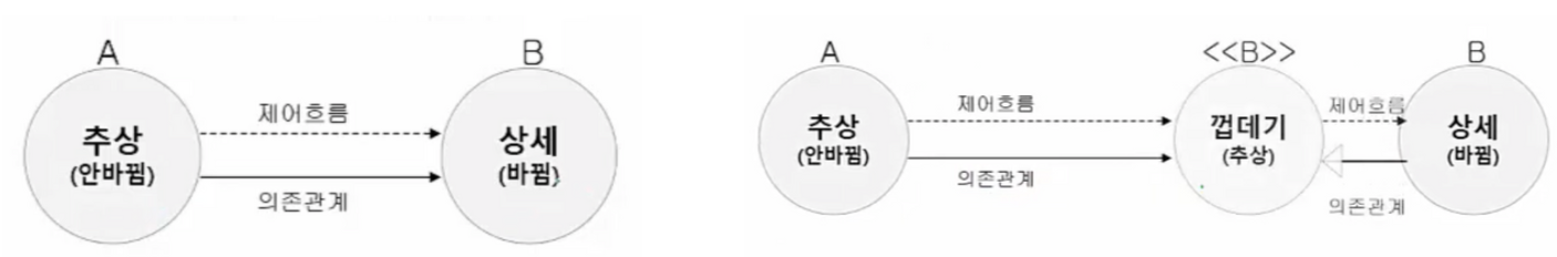 DIP(Dependency Inversion Principle) : 개념(추상)적인 것은 상세한(구체적) 것에 의존하면 안된다.